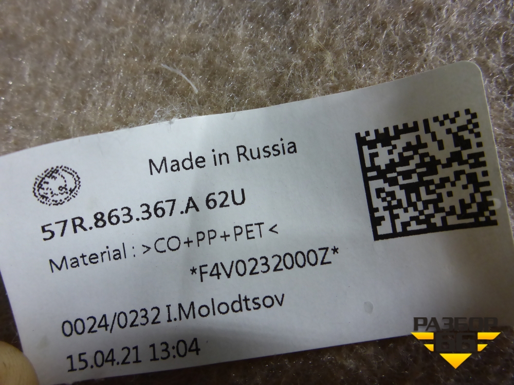 Покрытие напольное (57R683367A) для Skoda Karoq с 2017г (Карок) в Перми