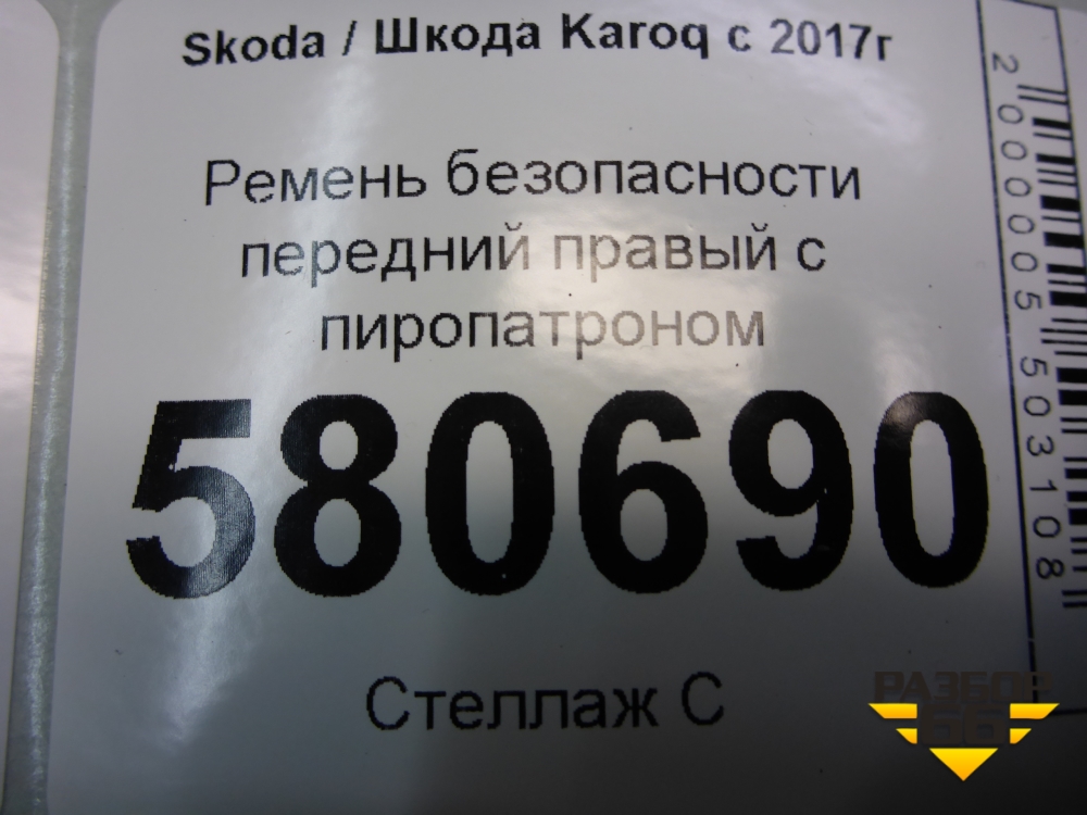 Ремень безопасности передний правый с пиропатроном для Skoda Karoq с 2017г (Карок) в Перми