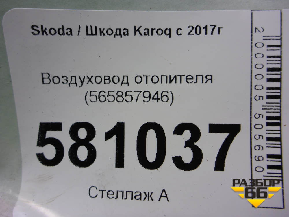 Воздуховод отопителя (565857946) для Skoda Karoq с 2017г (Карок) в Перми