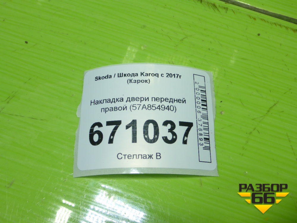 Накладка двери передней правой (57A854940) для Skoda Karoq с 2017г (Карок) в Перми