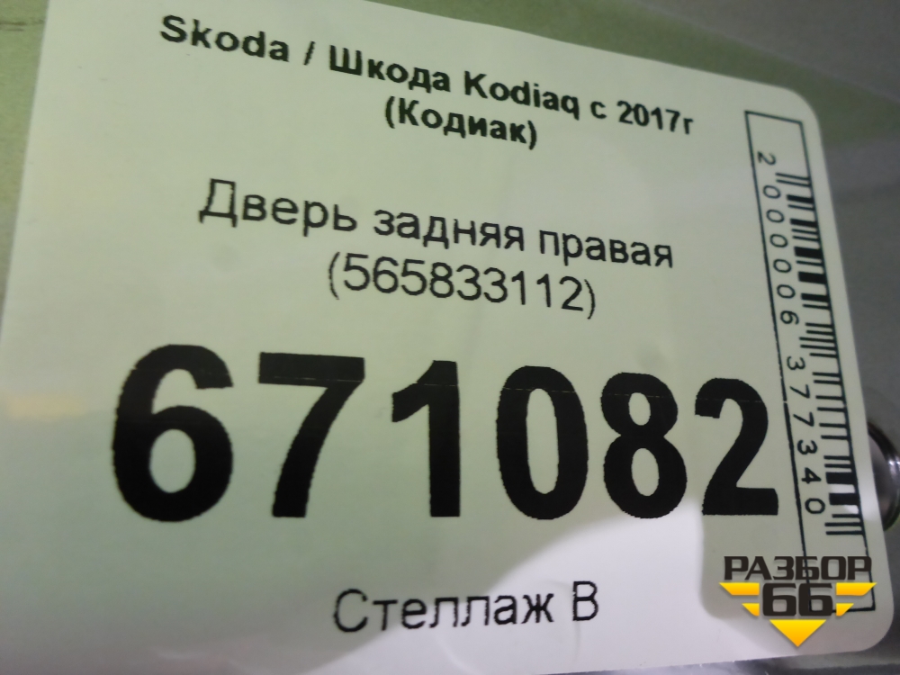 Дверь задняя правая (565833112) для Skoda Kodiaq с 2017г (Кодиак) в Перми