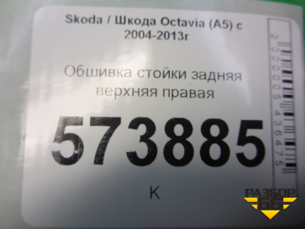 Обшивка стойки задняя верхняя правая (1Z1867296K) для Skoda Octavia (А5) с 2004-2013г (Октавия) в Перми