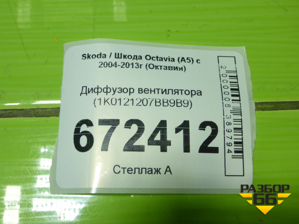Диффузор вентилятора (1K0121207BB9B9) для Skoda Octavia (А5) с 2004-2013г (Октавия) в Перми