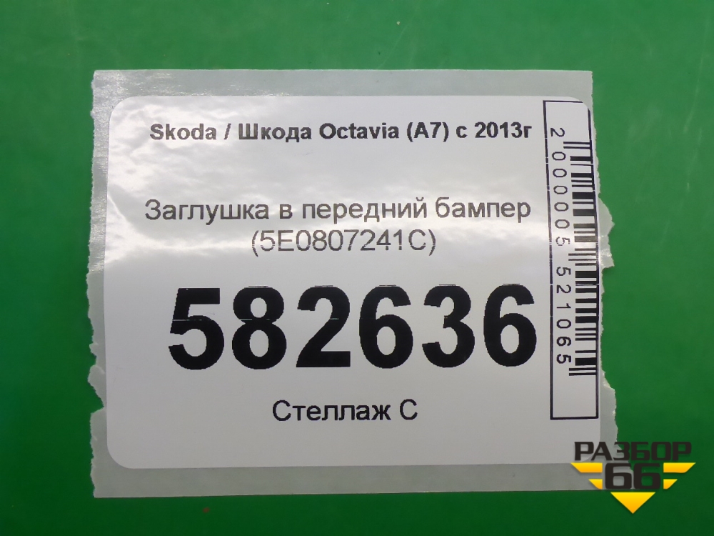 Заглушка в передний бампер (5E0807241C) для Skoda Octavia (A7) с 2013г (Октавия) в Перми