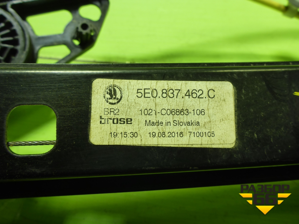 Стеклоподъёмник электрический передний правый (без моторчика) (5E0837462C) для Skoda Octavia (A7) с 2013г (Октавия) в Перми