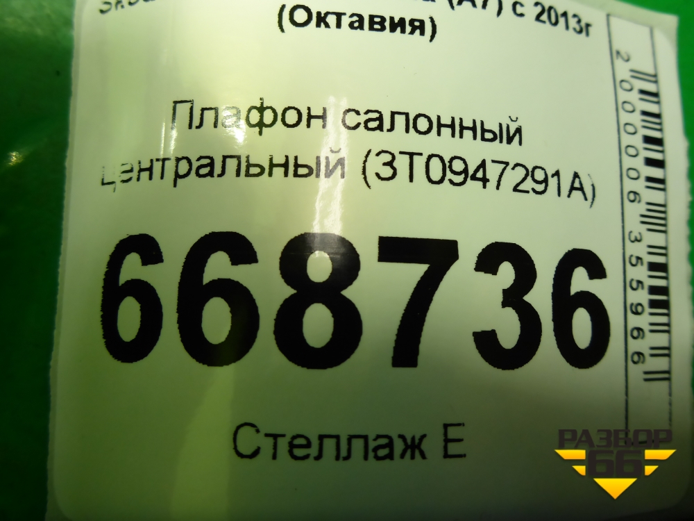 Плафон салонный центральный (3T0947291A) для Skoda Octavia (A7) с 2013г (Октавия) в Перми