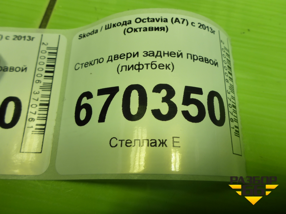 Стекло двери задней правой (лифтбек) для Skoda Octavia (A7) с 2013г (Октавия) в Перми
