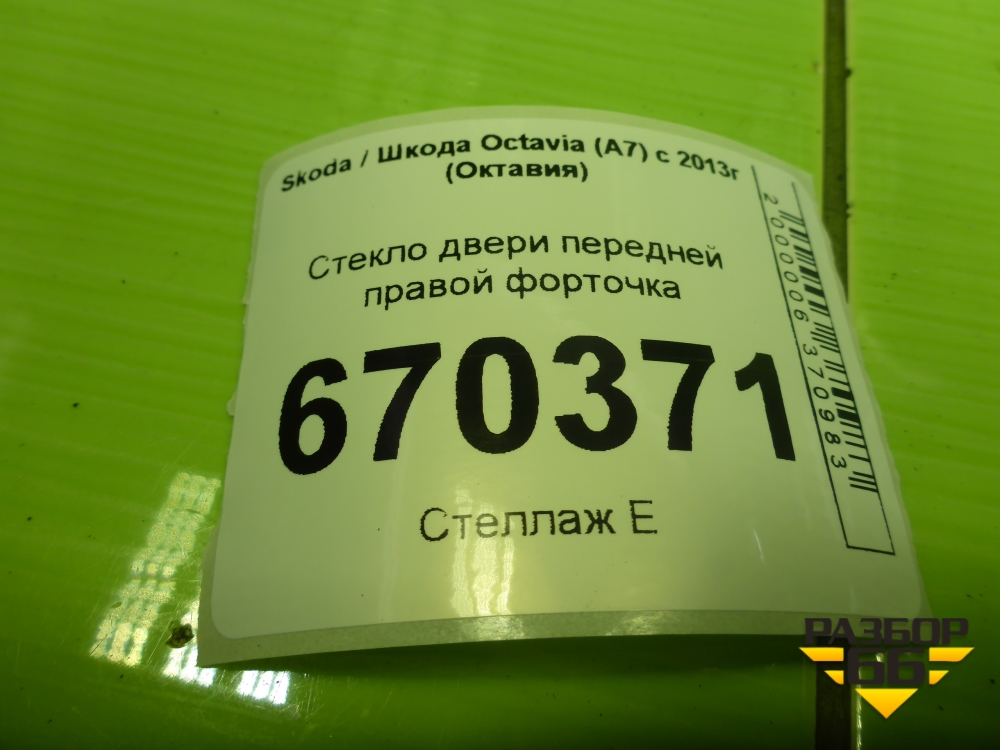 Стекло двери передней правой форточка (лифтбек) для Skoda Octavia (A7) с 2013г (Октавия) в Перми