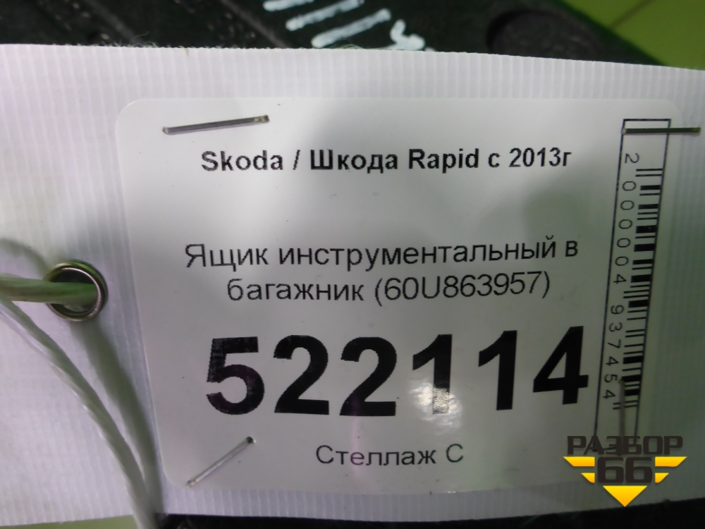Ящик инструментальный в багажник (60U863957) для Skoda Rapid с 2013г (Рапид) в Перми