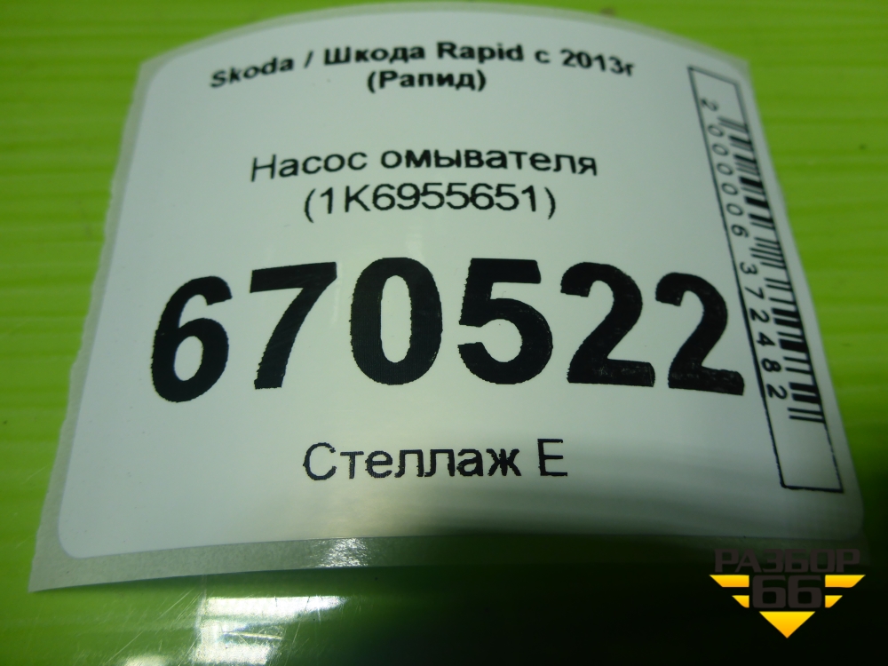 Насос омывателя (1K6955651) для Skoda Rapid с 2013г (Рапид) в Перми