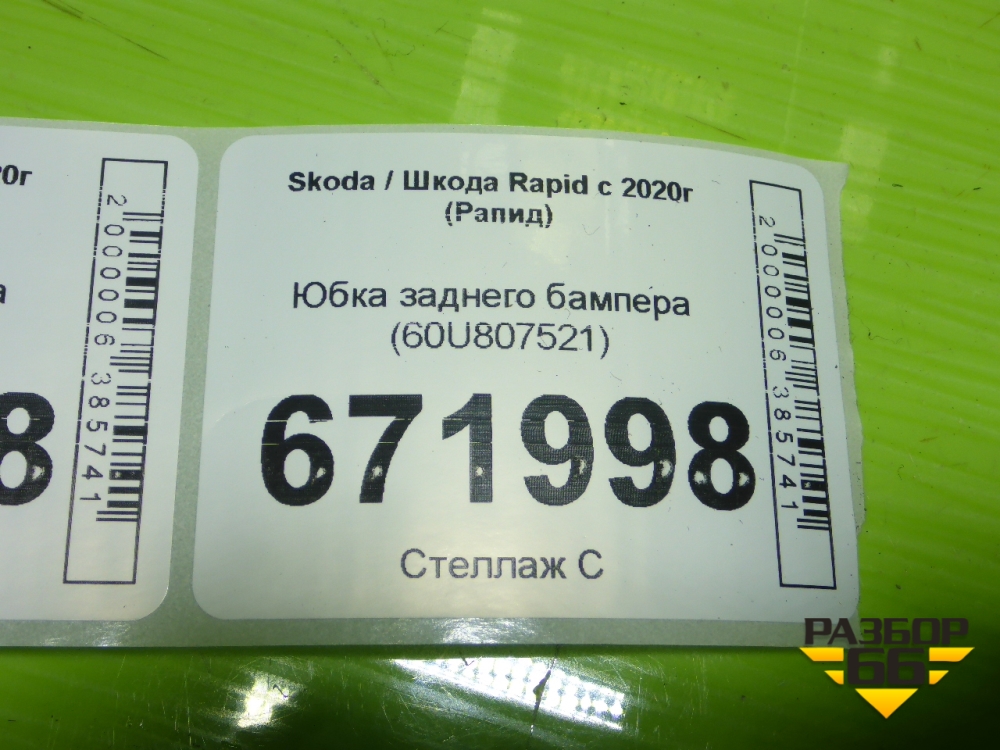 Юбка заднего бампера (60U807521) для Skoda Rapid с 2020г (Рапид) в Перми