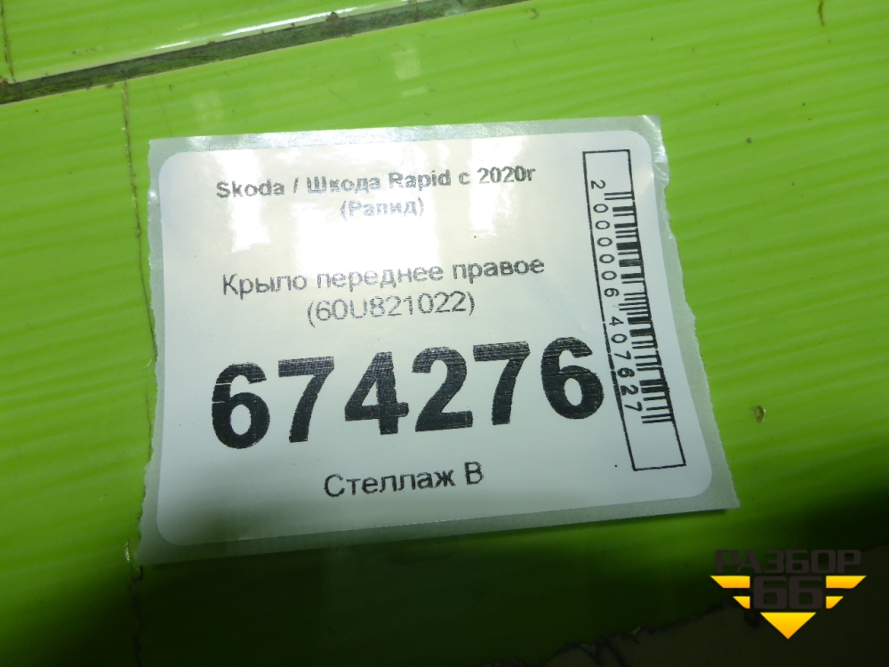 Крыло переднее правое (60U821022) для Skoda Rapid с 2020г (Рапид) в Перми
