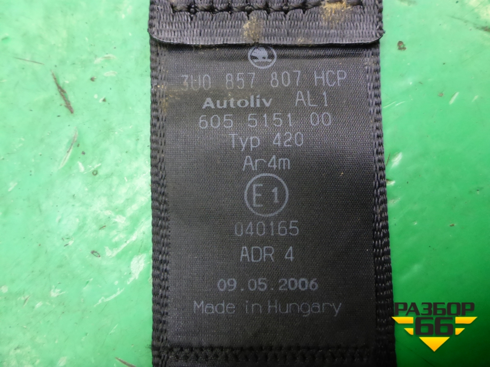 Ремень безопасности задний центральный (3U0857807) для Skoda Superb с 2001-2008г (Суперб) в Перми