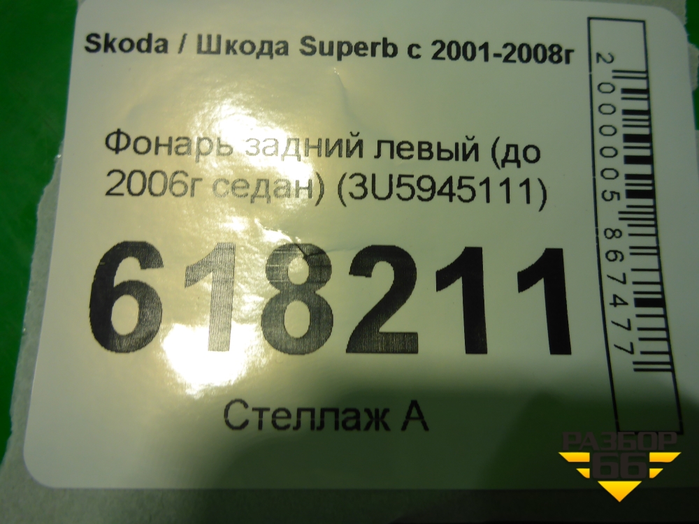 Фонарь задний левый (до 2006г седан) (3U5945111) для Skoda Superb с 2001-2008г (Суперб) в Перми