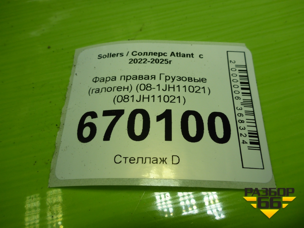 Фара правая (галоген) (08-1JH11021) (081JH11021) для Sollers Atlant с 2022-2025г в Перми