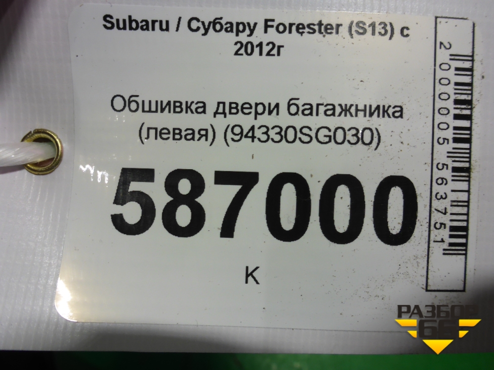 Обшивка двери багажника (левая) (94330SG030) для Subaru Forester (S13) с 2012г (Форестер) в Перми