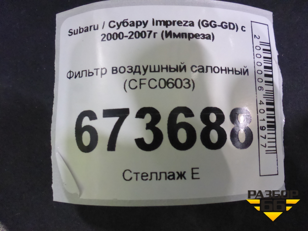 Фильтр воздушный салонный (CFC0603) для Subaru Impreza (GG-GD) с 2000-2007г (Импреза) в Перми