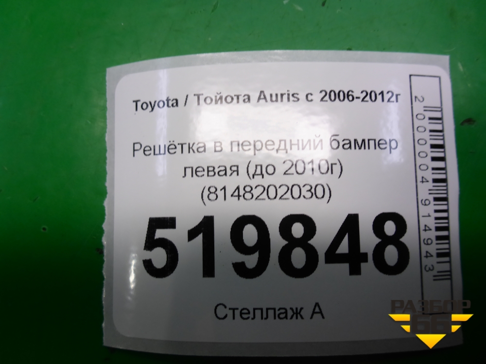 Решетка в передний бампер левая (до 2010г) (8148202030) для Toyota Auris с 2006-2012г (Аурис) в Перми