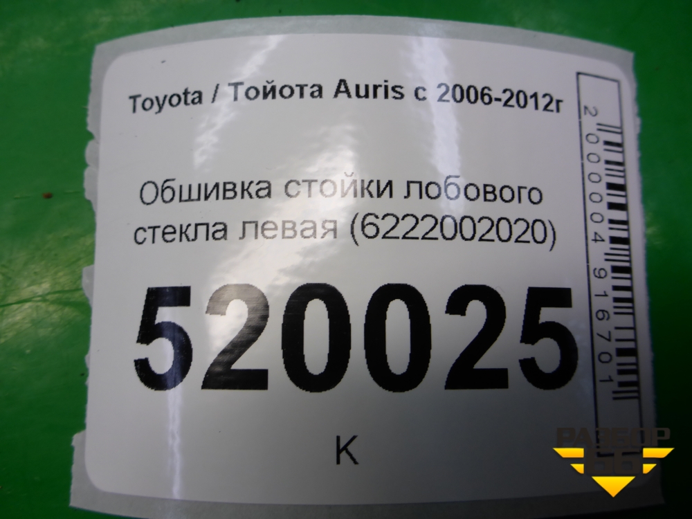 Обшивка стойки лобового стекла левая (6222002020) для Toyota Auris с 2006-2012г (Аурис) в Перми