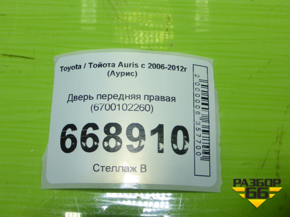 Дверь передняя правая (6700102260) для Toyota Auris с 2006-2012г (Аурис) в Перми