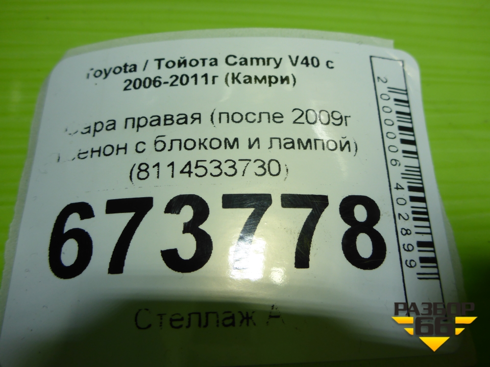 Фара правая (после 2009г ксенон с блоком и лампой) (8114533730) для Toyota Camry V40 с 2006-2011г (Камри) в Перми