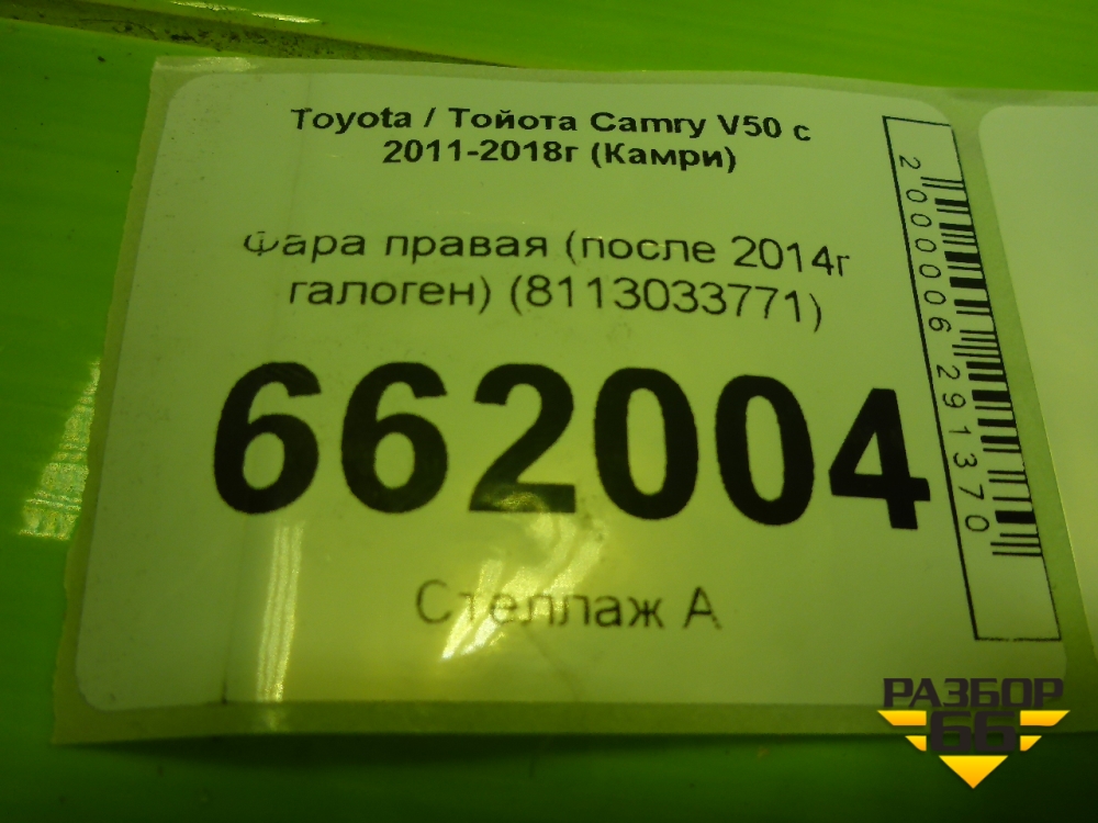 Фара правая (после 2014г галоген) (8113033771) для Toyota Camry V50 с 2011-2018г (Камри) в Перми