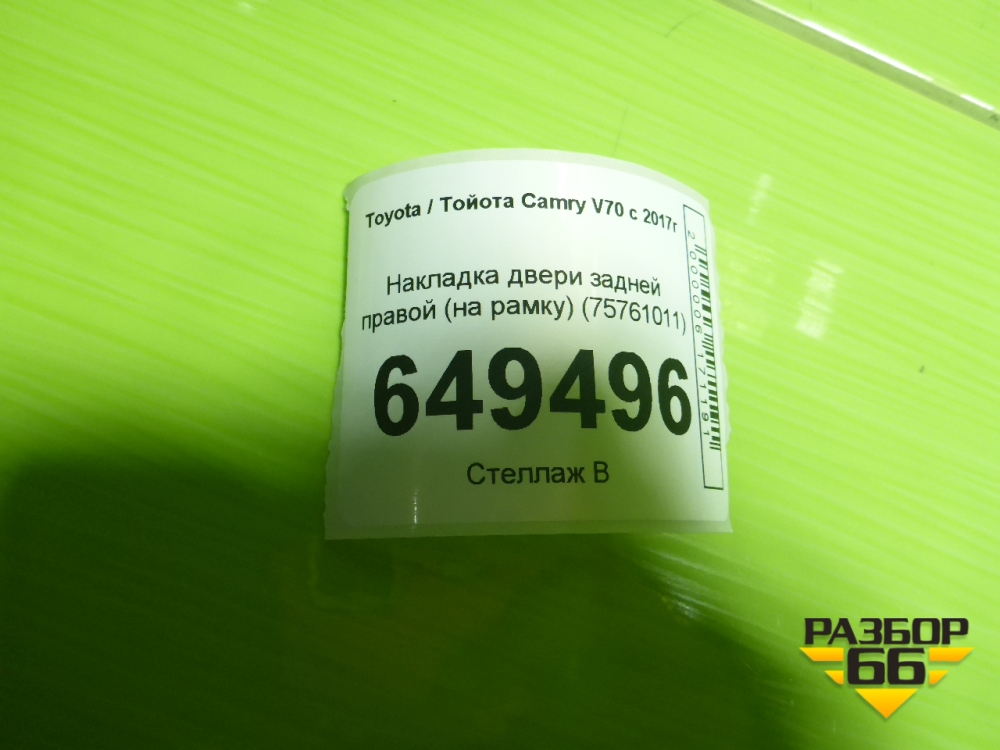 Накладка двери задней правой (на рамку) (75761011) для Toyota Camry V70 с 2017г (Камри) в Перми