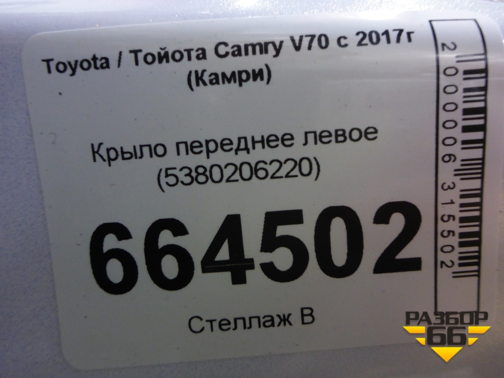 Крыло переднее левое (5380206220) для Toyota Camry V70 с 2017г (Камри) в Перми