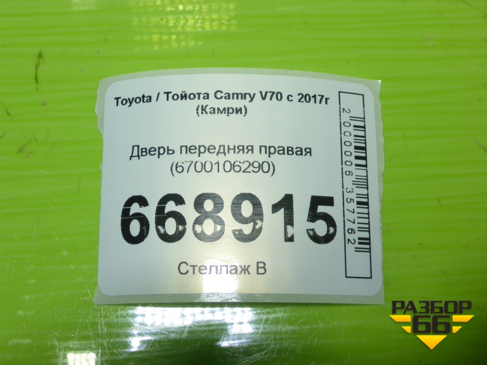 Дверь передняя правая (6700106290) для Toyota Camry V70 с 2017г (Камри) в Перми