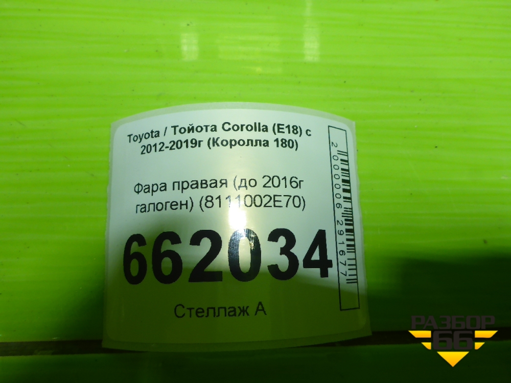 Фара правая (до 2016г галоген) (8111002E70) для Toyota Corolla (E18) с 2012-2019г (Королла 180) в Перми