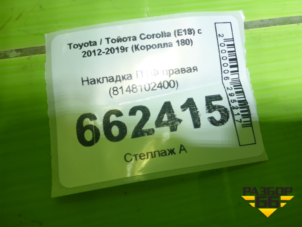 Накладка ПТФ правая (8148102400) для Toyota Corolla (E18) с 2012-2019г (Королла 180) в Перми