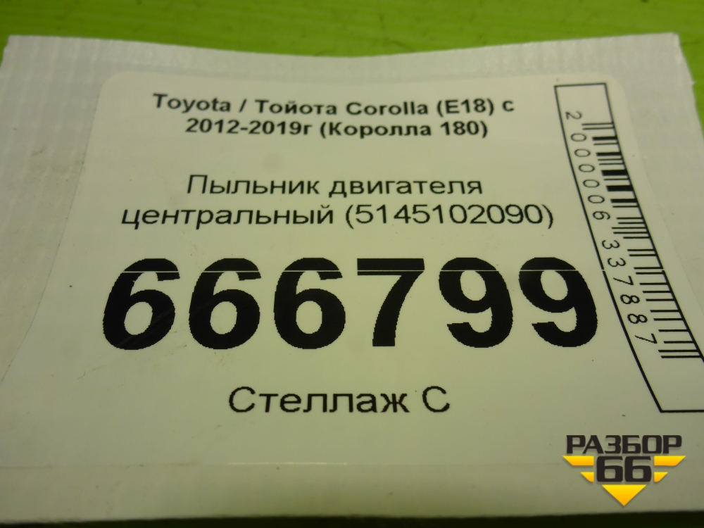 Пыльник двигателя центральный (5145102090) для Toyota Corolla (E18) с 2012-2019г (Королла 180) в Перми
