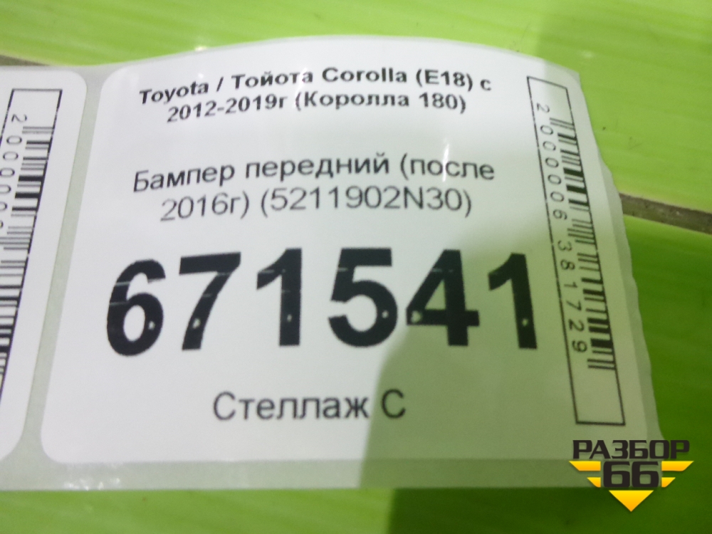 Бампер передний (после 2016г) (5211902N30) для Toyota Corolla (E18) с 2012-2019г (Королла 180) в Перми