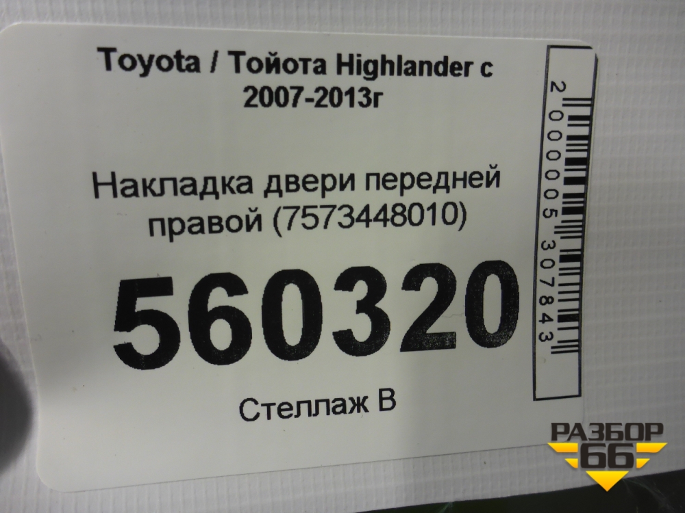 Накладка двери передней правой (7573448010) для Toyota Highlander с 2007-2013г (Хайлендер) в Перми