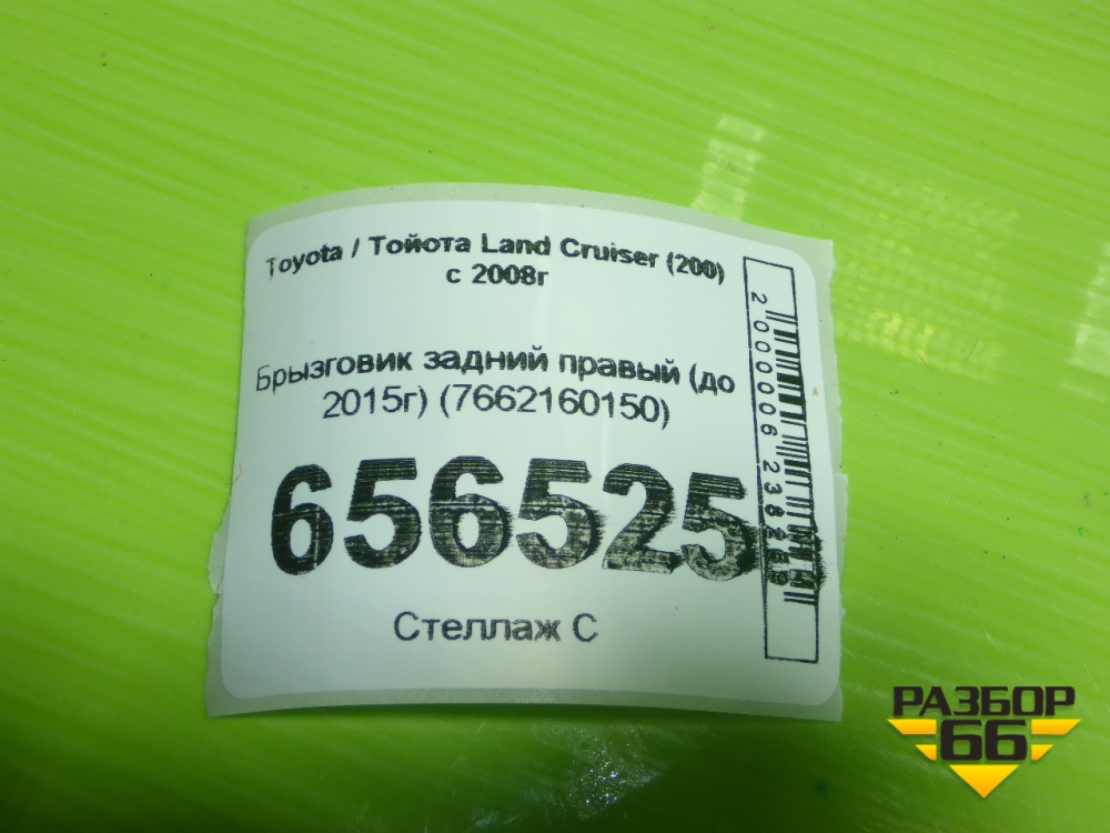 Брызговик задний правый (до 2015г) (7662160150) для Toyota Land Cruiser (200) с 2008г (Ленд Крузер) в Перми