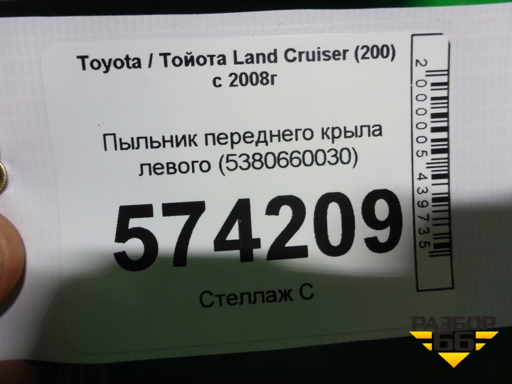 Пыльник переднего крыла левого (5380660030) для Toyota Land Cruiser (200) с 2008г (Ленд Крузер) в Перми