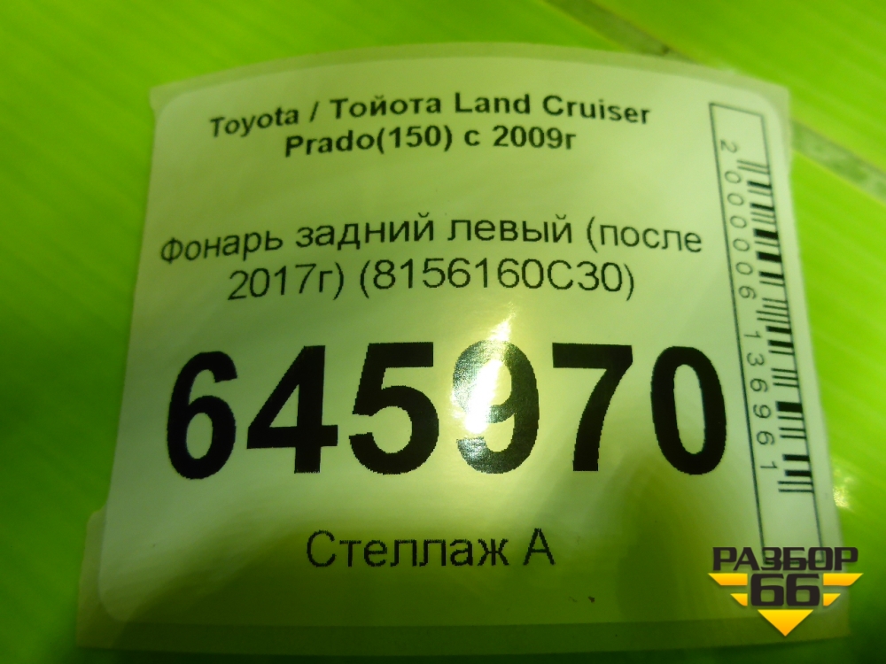 Фонарь задний левый (после 2017г) (8156160C30) для Toyota Land Cruiser Prado(150) с 2009г (Ленд Крузер Прадо) в Перми
