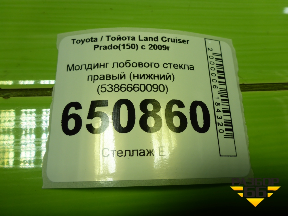 Молдинг лобового стекла правый (нижний) (5386660090) для Toyota Land Cruiser Prado(150) с 2009г (Ленд Крузер Прадо) в Перми