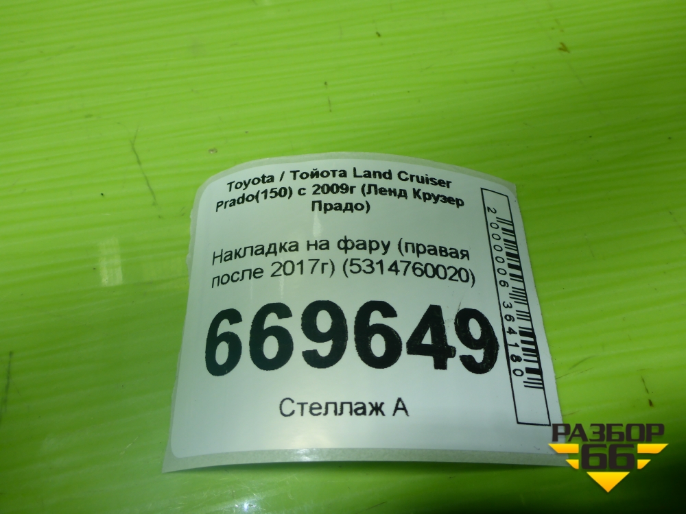 Накладка на фару (правая после 2017г) (5314760020) для Toyota Land Cruiser Prado(150) с 2009г (Ленд Крузер Прадо) в Перми