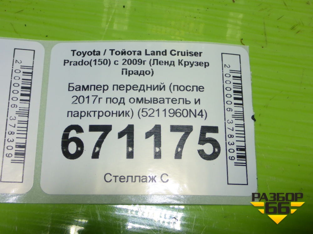 Бампер передний (после 2017г под омыватель и парктроник) (5211960N4) для Toyota Land Cruiser Prado(150) с 2009г (Ленд Крузер Прадо) в Перми