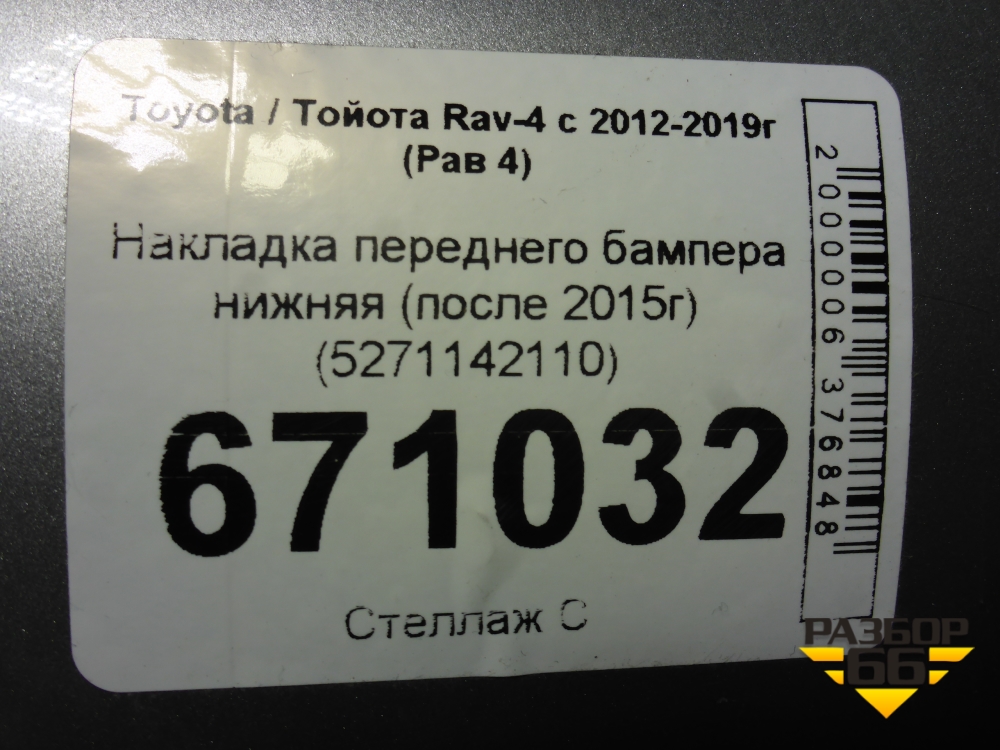 Накладка переднего бампера нижняя (после 2015г) (5271142110) для Toyota Rav-4 с 2012-2019г (Рав 4) в Перми
