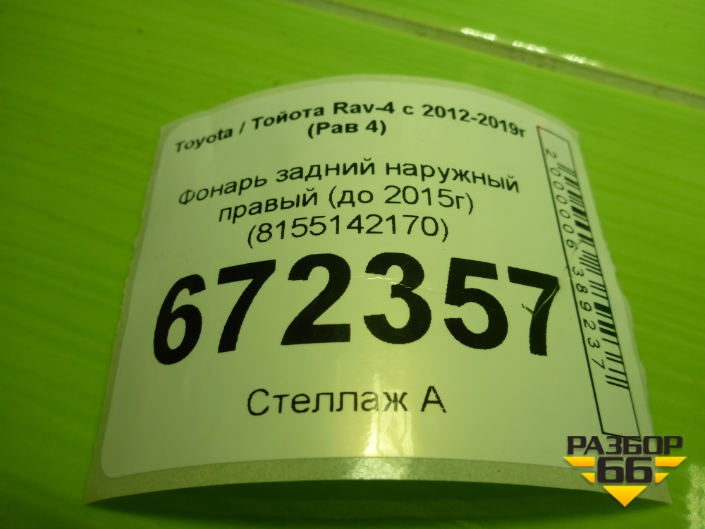 Фонарь задний наружный правый (до 2015г) (8155142170) для Toyota Rav-4 с 2012-2019г (Рав 4) в Перми