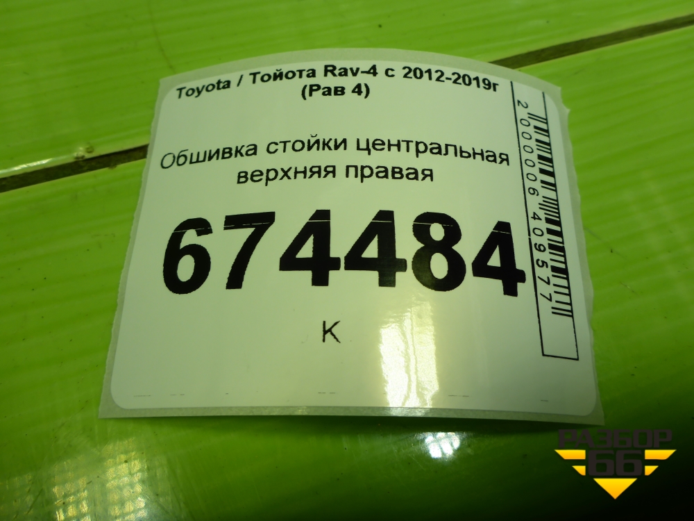 Обшивка стойки центральная верхняя правая (6241042070) для Toyota Rav-4 с 2012-2019г (Рав 4) в Перми
