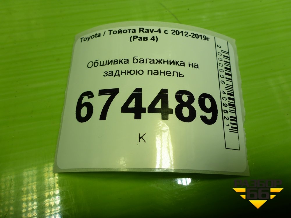 Обшивка багажника на заднюю панель (6471642020) для Toyota Rav-4 с 2012-2019г (Рав 4) в Перми