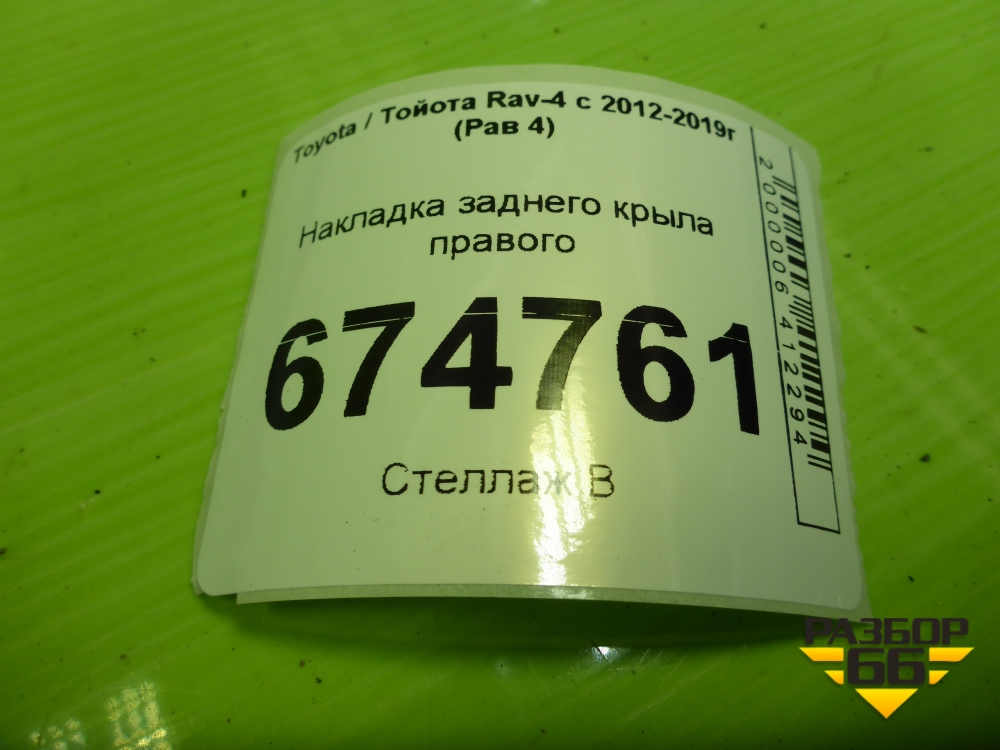 Накладка заднего крыла правого (до 2015г) (7560542190) для Toyota Rav-4 с 2012-2019г (Рав 4) в Перми