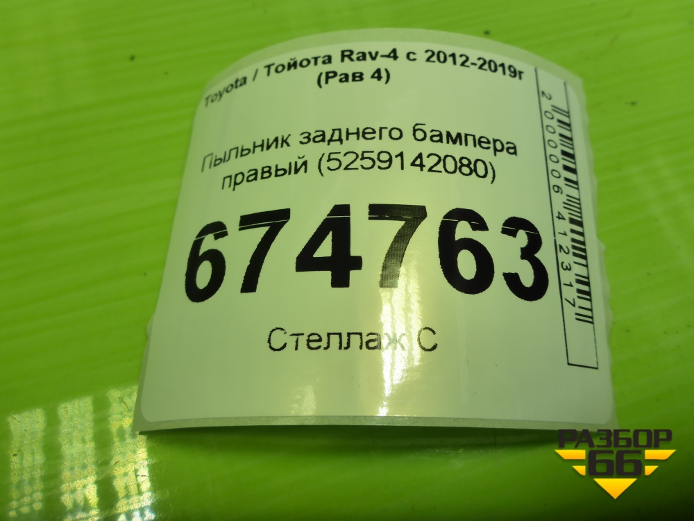 Пыльник заднего бампера правый (5259142080) для Toyota Rav-4 с 2012-2019г (Рав 4) в Перми