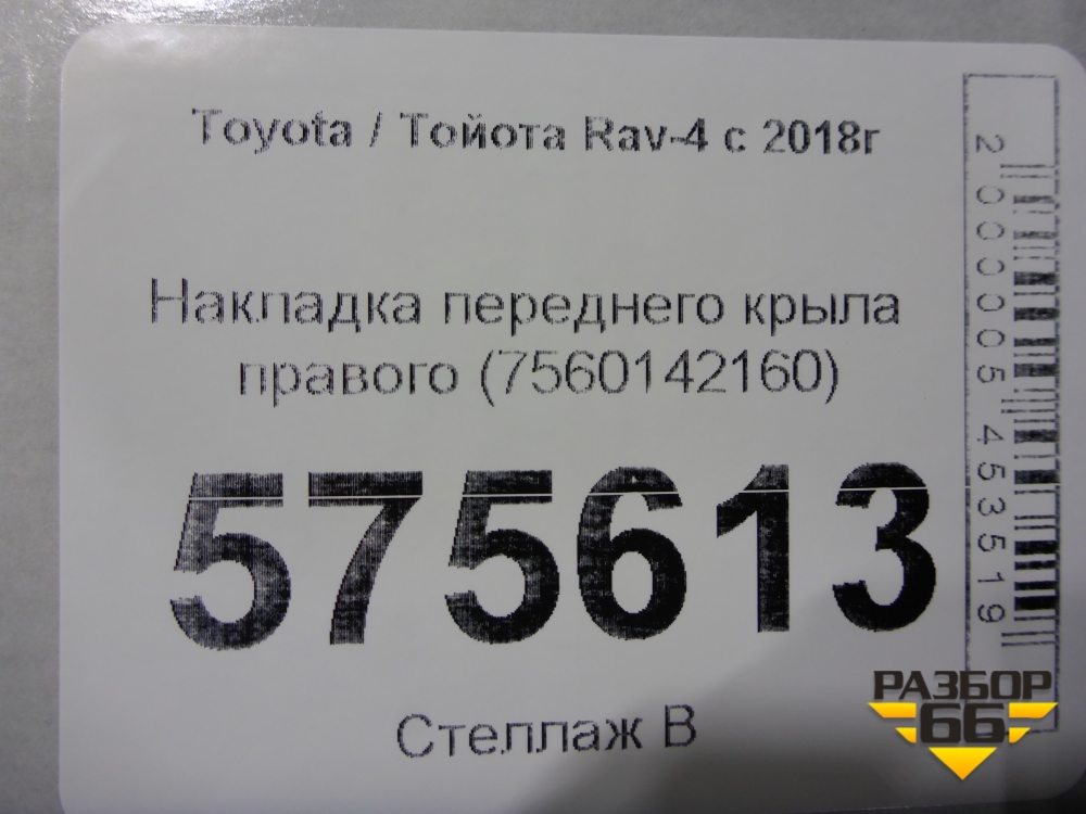 Накладка переднего крыла правого (7560142160) для Toyota Rav-4 с 2018г (Рав 4) в Перми