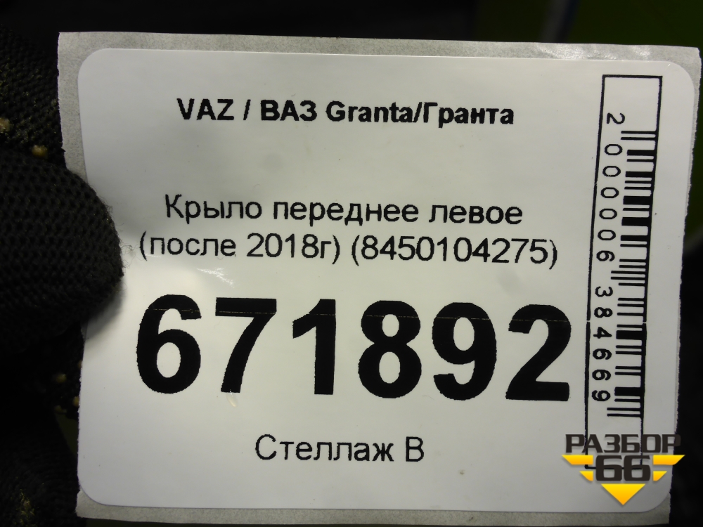 Крыло переднее левое (после 2018г) (8450104275) для VAZ Granta/Гранта в Перми