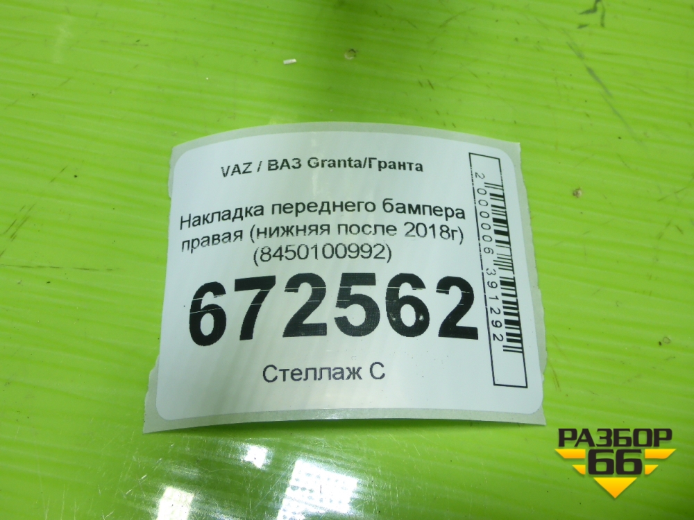 Накладка переднего бампера правая (нижняя после 2018г) (8450100992) для VAZ Granta/Гранта в Перми
