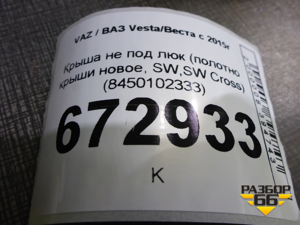 Крыша не под люк (полотно крыши новое, SW,SW Cross) (8450102333) для VAZ Vesta/Веста с 2015г в Перми